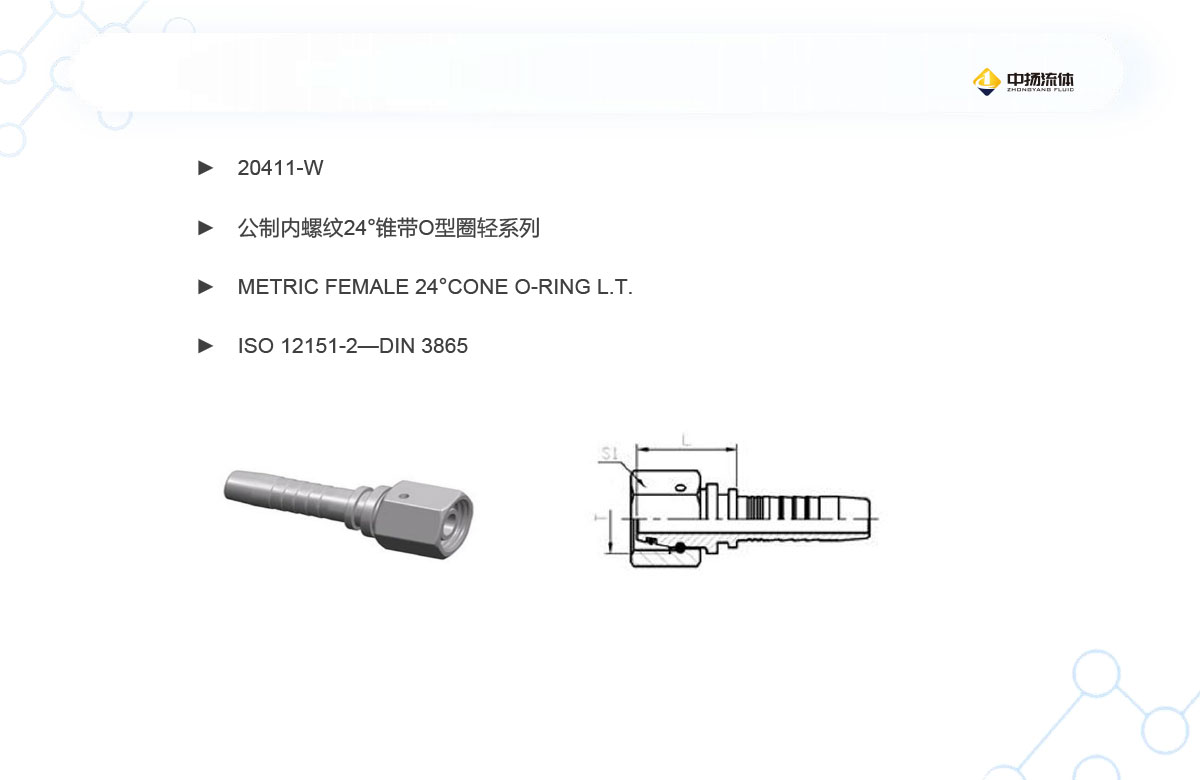 公制內(nèi)螺紋24°錐帶O型圈輕系列